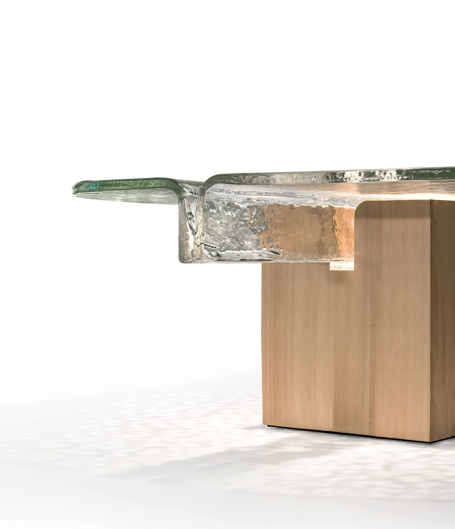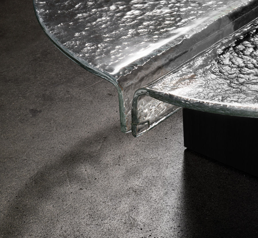 Unlike other materials, glass shines best when left to be the living and breathing material that it naturally is. In its molten state, glass pools and flows just like a flowing stream. Cascade captures a slice of a flowing river and brings the beauty of nature into daily lives while still retaining its movement.